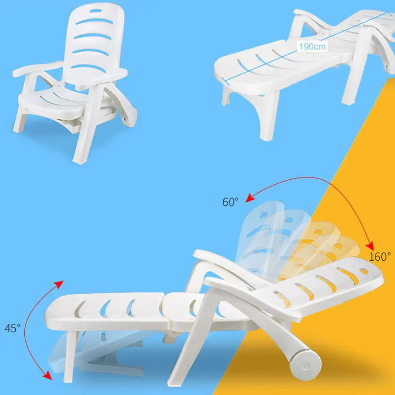 Special Original 1.9 M Sun Lounge Chair Table Thicken PP Home Funiture Folding Outdoor Bed Hotel Pool Beach