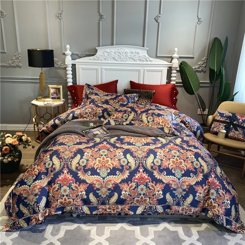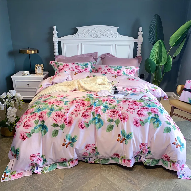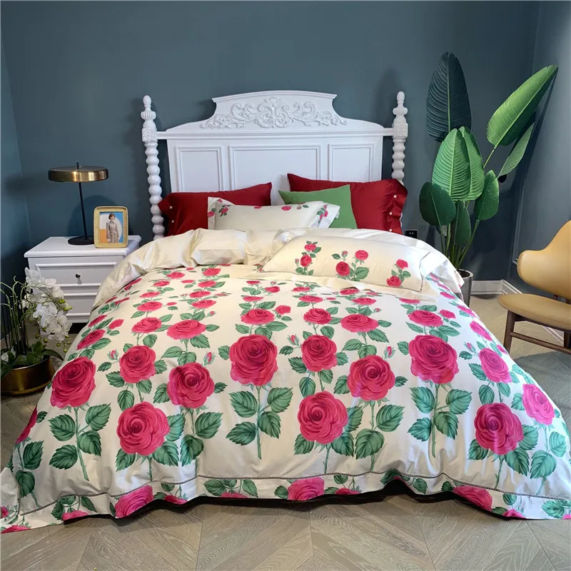 Discount Vibrant Red/Pink Rose Garden Colorful Bedding Set 600TC Egyptian Cotton Ultra Soft Duvet Cover Bed