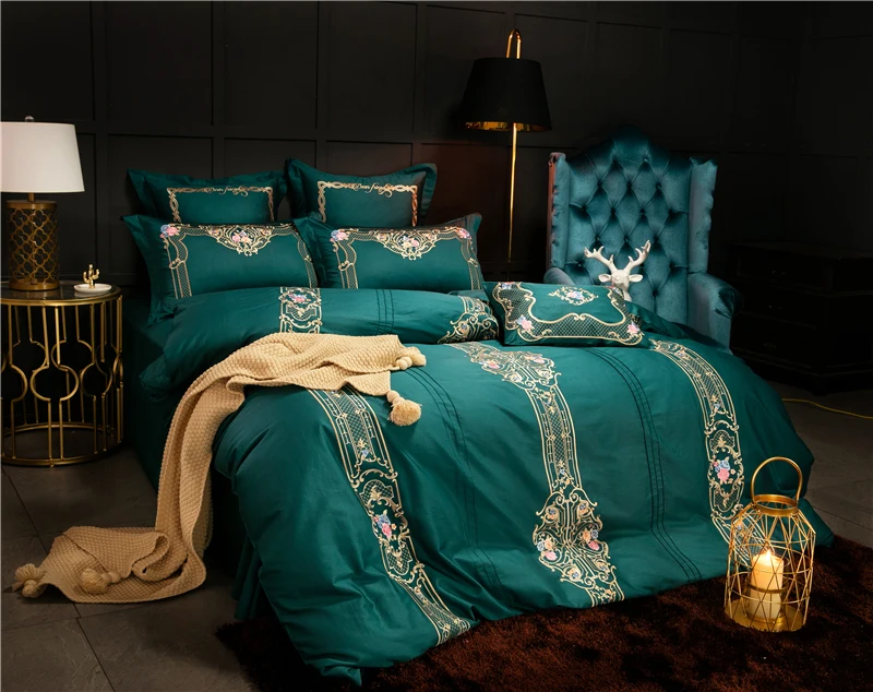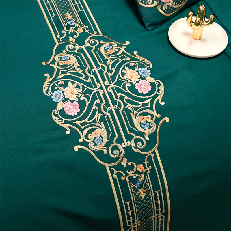 Get 4/6/7Pcs Luxury Egypt Cotton Afternoon Garden Bedding Set Embroidery Pleating Duvet cover set Bed S