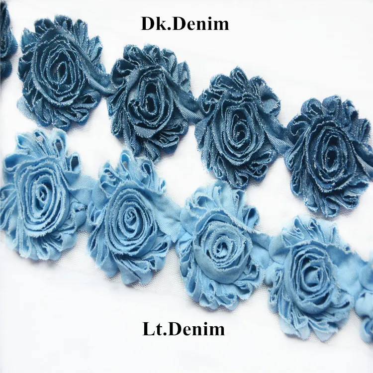 Wholesale 30 yards/ lots 2.5'' shabby denim rose flower for apparel hair headwear hair accessories