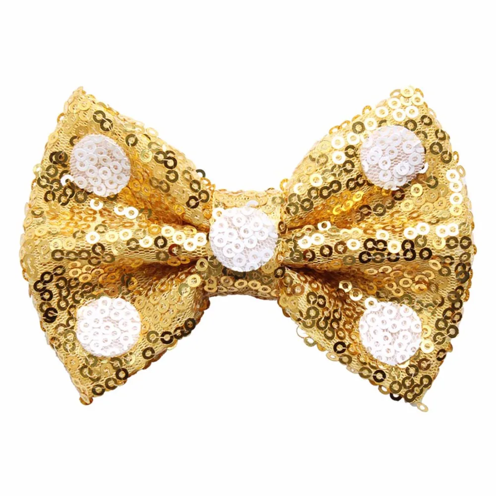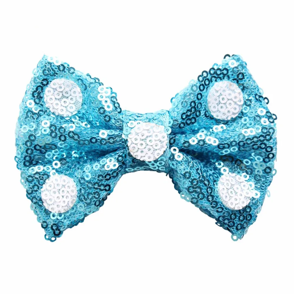 Top Seller 15 pcs / lot 4'' Sequin Hair Bows For Girls Glitter White Dots Hair Bow DIY Kids Headband apparel Hair accessories